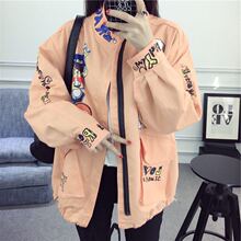 春秋新款韩版原宿风BF宽松贴布飞行员夹克潮刺绣字母棒球服外套女