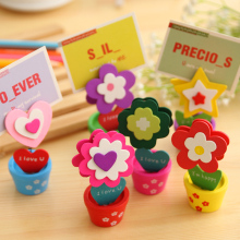 韩版创意文具可爱花朵照片夹子便条夹 圣诞木质花盆留言夹便签夹