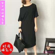 夏季新款时尚外出哺乳衣喂奶装产后辣妈月子家居服露肩纯色连衣裙