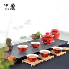 甲馨 茶具套装 整套红兰藤花陶瓷茶具红釉功夫茶具