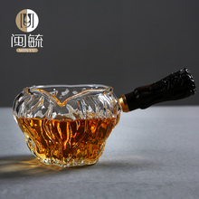 闽毓 防烫加厚耐热玻璃公道杯侧把锤纹公杯分茶器黑檀木茶具配件