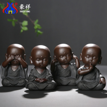 豪祥 精品茶宠摆件小和尚开片汝窑茶盘茶玩茶道配件小沙弥四不做