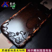 黑檀木茶盘手工雕年年有余整块黑檀进口檀木实木整块大号茶海特价