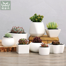 烤多肉园艺 盆栽花卉多肉植物种植花盆 纯白陶瓷 圆形 长方形简约