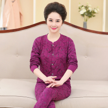 中老年保暖内衣加绒加厚女纯棉秋衣秋裤套装妈妈装冬季