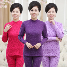 中老年保暖内衣女加绒加厚秋衣秋裤套装大码中高领妈妈装冬季