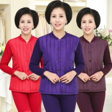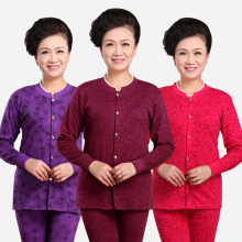 中老年开衫保暖内衣女加厚加绒秋衣秋裤开襟妈妈装棉毛衫套装冬季