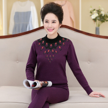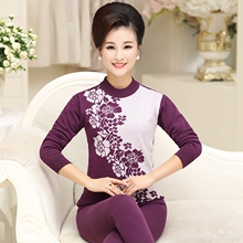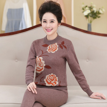 秋衣秋裤中老年女士纯棉保暖内衣妈妈中高领棉毛衫套装