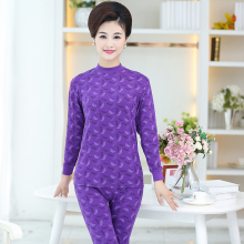 中老年保暖内衣女加厚加绒高领纯棉秋衣秋裤套装妈妈装冬季