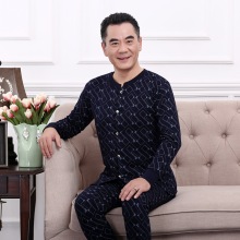中老年开衫保暖内衣男士加绒加厚秋衣秋裤套装大码