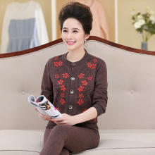 女士开衫秋衣秋裤中老年纯棉开襟保暖内衣打底棉毛衫套装妈妈装