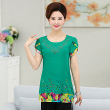妈妈装上衣绣花t恤衫女中年40-50对妈妈打底衫中老年女装大码体恤