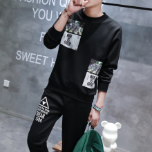 卫衣男圆领印花秋装新款青少年初中高中学生男装休闲运动服套装潮