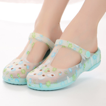 夏季新款凉拖鞋印花果冻鞋厚底沙滩鞋洞洞鞋韩版包头套脚女式凉鞋