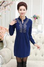 中老年人女装秋装裙中年妈妈装40-50岁连衣裙长袖毛衣打底衫上衣