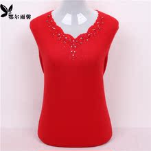 富贵妈妈装V字领 花边领烫钻镂空 色打底衫百搭秋冬新款女羊绒衫