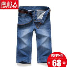 南极人牛仔短裤 男士修身休闲薄款2017夏季新款七分牛仔裤男中裤