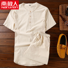 南极人纯棉短袖t恤套装男夏季男装中国风半袖宽松复古休闲两件套