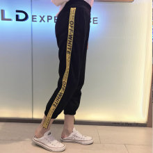 2017春装新款韩版百搭字母印花运动休闲裤宽松显瘦小脚哈伦裤女潮