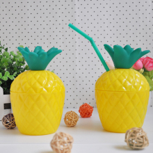 新品促销 儿童大菠萝塑料杯 创意大肚水杯 饮料杯 带盖