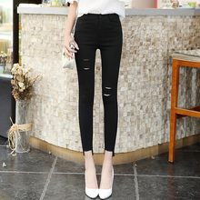 2017春季韩版打底裤女外穿破洞薄款九分裤黑色小脚裤春秋2016新款