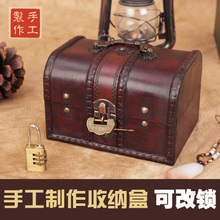 欧式创意复古盒子带锁密码收纳盒首饰证件木质储物箱办公桌密码盒