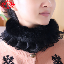 围脖女 秋冬季兔毛围巾女 冬天韩版时尚蕾丝皮草脖套加厚保暖护颈
