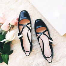 真皮女鞋子 2016秋季新款玛丽珍甜美珍珠扣纯色粗跟浅口时尚单鞋