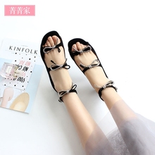 2016夏新款 立体蝴蝶结露趾内增高平底鞋 高跟鞋 凉拖 真皮女鞋子