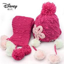 2017迪士尼公主儿童帽子冬季帽保暖针织帽围巾儿童女童两件套韩版