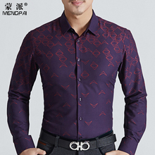 长袖衬衫男 蒙派2017春装新品男士商务休闲碎花免烫翻领中年衬衣