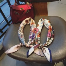 韩版春季小丝巾女万紫千红印花仿真丝小丝巾小领巾鲜艳花卉围巾女