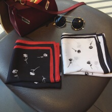 米儿家春季新款小丝巾 韩版印花小花朵仿真丝小方巾领巾 黑白两色