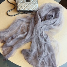 2017新款轻盈丝巾桑蚕丝撞色纯色拼色真丝围巾披肩立体纹路丝巾女