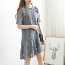 DA23斜边裙摆之美HoneyHami-17圆领五分袖蕾丝连衣裙my96 SS