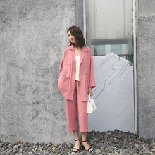 美丽的皇帝 2017春季新款豆沙红宽松西装8分裤套装