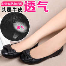 单鞋女平底百搭春夏季妈妈鞋软底真皮平跟浅口圆头大码中老年女鞋