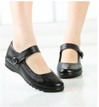 菲狐伊品2016新款四季鞋防滑软底单鞋平底妈妈鞋真皮中老年女皮鞋