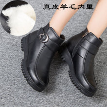 冬季棉鞋短靴羊毛中老年人妈妈女鞋中年女靴子平底真皮牛老人皮鞋