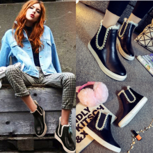 2016新款冬季女鞋马丁靴英伦风女圆头低跟女短靴及裸靴平底女靴子