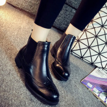 欧洲站秋冬新款平底女靴复古雕花马丁靴潮女短靴英伦风真皮裸靴