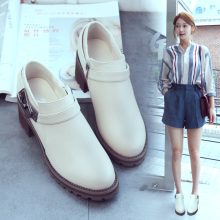 2017春季新款百搭女鞋高跟粗跟圆头复古单鞋女拉链英伦学院风鞋潮