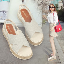 2016新款厚底凉鞋女夏平底简约学生松糕鞋中跟罗马女鞋凉鞋韩国潮