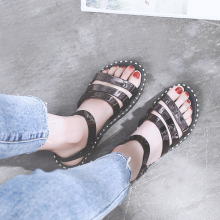 2017新款女式厚底松糕凉鞋女夏季平底学生简约百搭鞋子防滑罗马鞋
