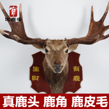 招财梅花鹿 鹿头壁炉装饰壁挂鹿头标本 真皮毛 真鹿角 长脖鹿头