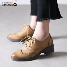 春秋英伦小皮鞋女复古系带雕花布洛克单鞋学院风低跟学生百搭女鞋