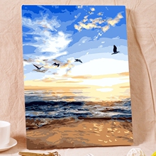自油自画 diy数字油画 手绘客厅卧室海边风景手绘装饰画 飞得更高