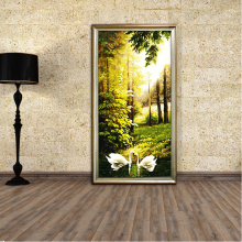 大幅数字油画竖版玄关竖向客厅欧式田园风天鹅湖diy风景手绘晨光