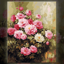 新品数字油画盛艳牡丹DIY手绘大幅花卉客厅玄关中式装饰画