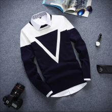 zdbz春秋长袖t恤男士毛衣拼接韩版修身休闲线衫打底针织小衫上衣